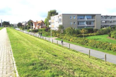 Eine große Wohnanlage direkt am Deich, etwas abseits vom Trubel und daher sehr ruhig. Etwa 15 Minuten zur Ortsmitte und zum Kurzentrum. Direkte Strandlage. 100 m zum Strand und ca. 3 min. zum Hundestrand. Waschmaschine und Trockner gegen Gebühr.
