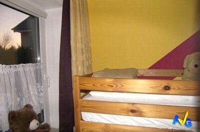 Kinderzimmer: Separater Kinderschlafraum mit Stockbett. Das Fenster lässt sich blickdicht verdunkeln